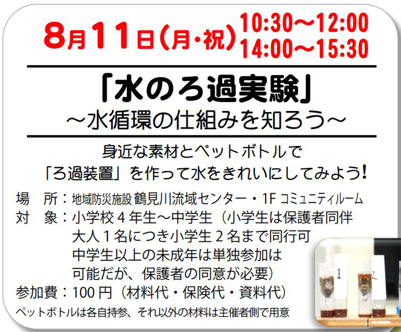 国土交通省の京浜河川事務所が運営する地域防災施設「鶴見川流域センター」(小机駅徒歩約6分)では、今月(2025年)8月22日(金)まで、観察会や実験などの体験活動や工作などの学習会が毎日のように企画されています。