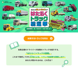 新横浜2丁目に本部を置く一般社団法人神奈川県トラック協会(吉田修一会長)は、今月(2025年)8月18日から「はたらくトラック総選挙」と題し、トラック13車種の人気投票を始めました。