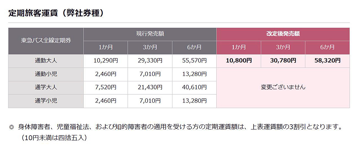 このほか、「東急バス一日乗車券」についても現行の大人540円を560円に改定となりますが、小児運賃(280円)は現状で据え置かれます。