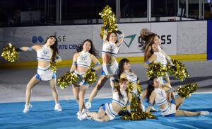 オフィシャルチアリーダーの「グリッツトパーズ(GRITS TOPAZ)」も今季は新たに3名のルーキー(ASAKIさん、MAKOさん、MIZUNAさん)を迎え、前年より1人増えて8人の新体制で会場を盛り上げる(9月6日)