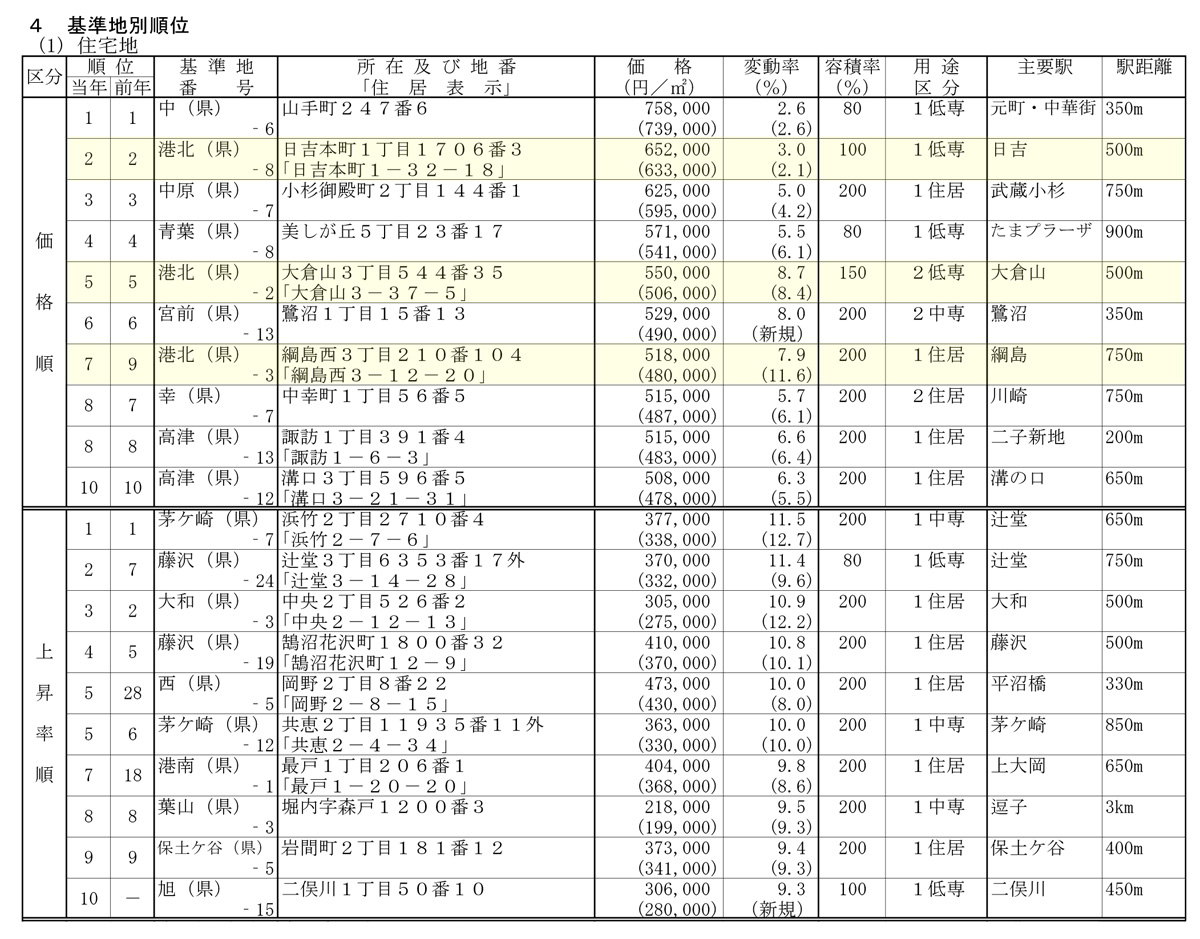 大倉山3丁目が区内トップの上昇率となりました。