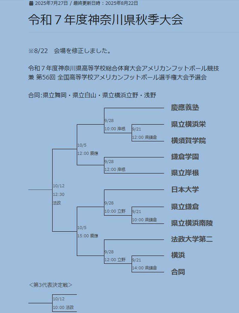・令和7年度神奈川県秋季大会(関東高等学校アメリカンフットボール連盟)