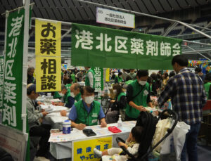 地域からも多数の組織や団体が出展。港北区薬剤師会は「お薬相談」で日頃のお薬に関する悩み事へのアドバイスを行っていました