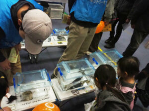 「鶴見川わくわく水族館」の生き物たちに子どもたちも夢中になっていました