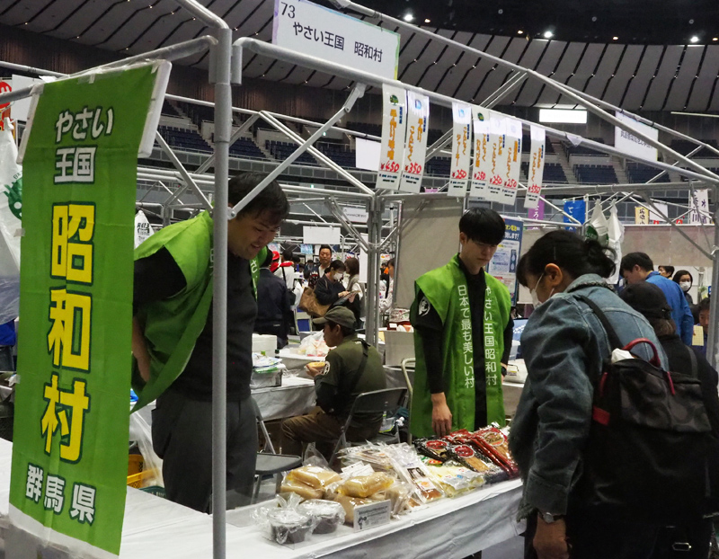 横浜市と友好交流を続ける「群馬県昭和村」は地場産品を販売、新横浜パフォーマンスとの同時「W出店」にトライしていました