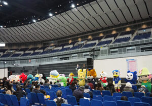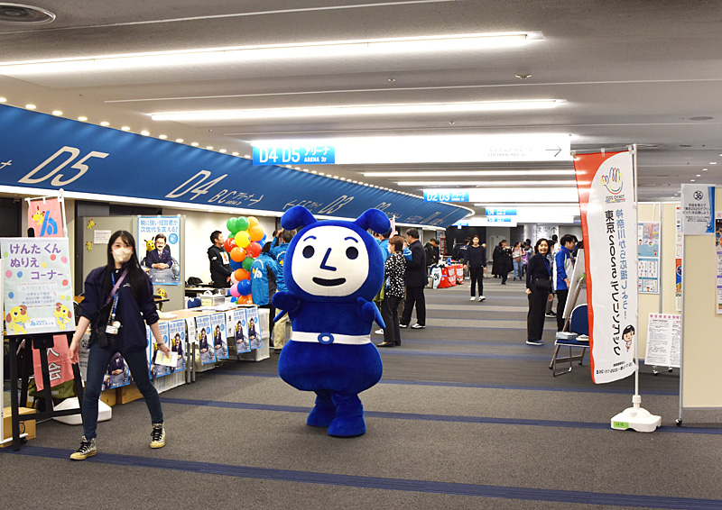 2階の「ヨコアリくんまつり」を視察する横浜アリーナの公式キャラクター「ヨコアリくん」、実は真の主催者?