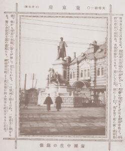 戦前の1943(昭和18)年まで秋葉原駅の神田駅寄りに存在した万世橋(まんせいばし)駅の駅前には、日露戦争で英雄となった広瀬武夫(廣瀬中佐)らの巨大な銅像が置かれ、“軍神”として広く知られていた(1912年「日本名勝旧蹟産業写真帖:国定小学校教科書準拠 天」~国会図書館デジタルコレクションより)