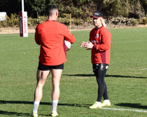 今季のキャプテンに任命されたのは、南アフリカ出身でイーグルス7シーズン目となるジェシー・クリエル選手(CTB=センター)。「彼が持ってくるエナジーとリーダーシップは素晴らしく、南アフリカ(代表チーム=スプリングボクス)でのゲームキャプテン経験がつながっている」(マクドナルドHC)。