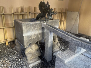 続いて菊名神社と同じ旧綱島街道沿いに鳥居が置かれた「大豆戸不動尊」を訪問。不動堂は20年ほど前に火災で焼失していますが、かつて湧出していた湧水を祀(まつ)った不動尊で、今も龍頭と不動明王の像があります。