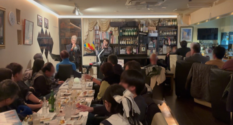 ジャズのスタンダード曲「サンデイ(Sunday)」や、歌手・バニーマニロウの「 ホエン・オクトーバー・ゴーズ(When October goes)」も選曲、師走の新横浜に響く、とがわちずこさんらしい歌声と、世界が評価した大野さんのトランペットの熟練の響きで来店した人々を魅了。演奏に溶け込むかの、野力さんらしい優しいタッチのピアノの響きとともに、心を通わせてのセッションに人々が酔いしれる姿が見られていました。