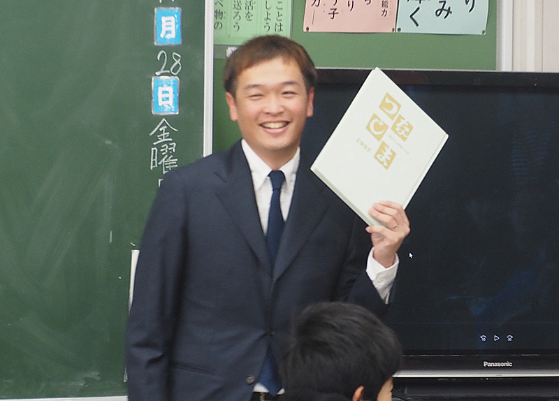 11月28日の1クラスを担当した久光邦明さんは、同小学校の卒業生。