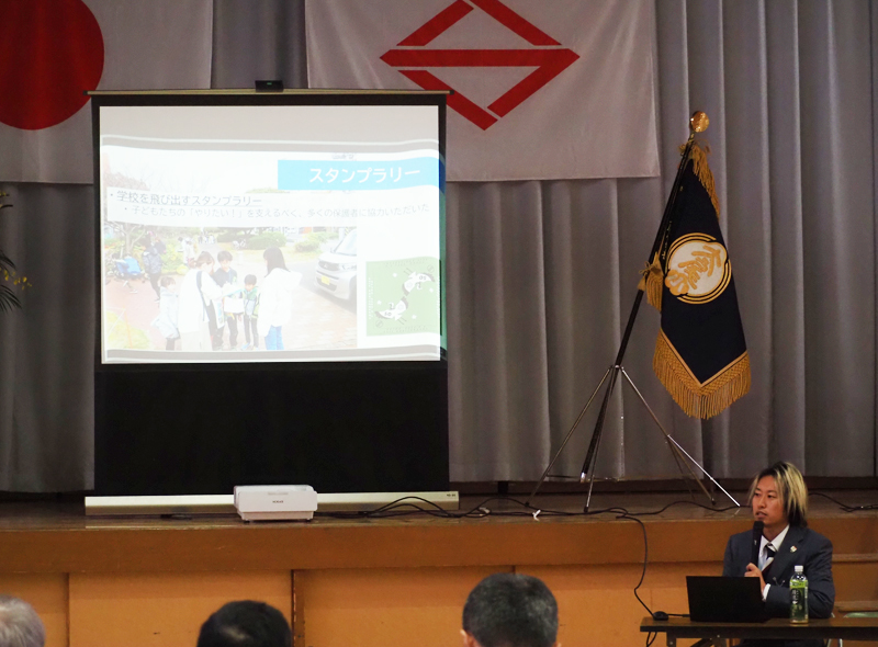 「50周年記念事業紹介」では、前PTA会長の波多野実行委員長が登壇。11月18日に児童が企画した記念事業としての「全校スタンプラリー」が開催されたことにも触れ、「大人たちは手伝うスタンス」と、子どもたちが自分たちのアイデアを地域に出て形にできたことを称えていた