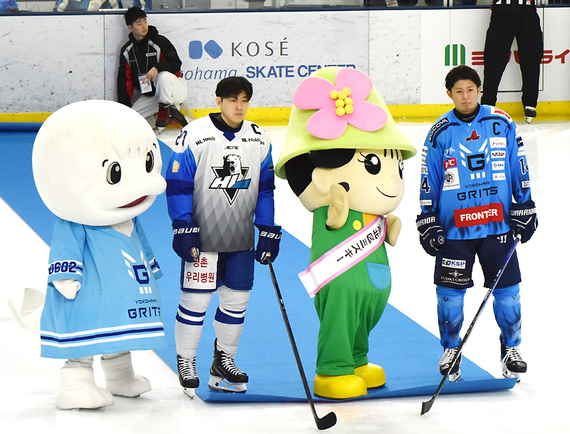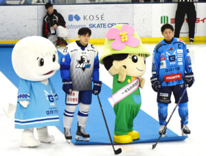 プロアイスホッケー「アジアリーグ」の横浜グリッツ(GRITS)は、今月(2026年)1月2日(金)から4日(日)まで本拠地のKOSE新横浜スケートセンターでHLアニャンと対戦し、初日は「港北区民DAY(デー)」として区のキャラクター「港北区ミズキー」が記念フェイスオフを行うなど、詰めかけた1144人の観客に区をアピールしました。