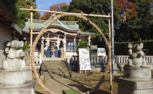 西方寺からも近い「新羽杉山神社」まで移動。鶴見川流域にのみ数多く存在している“杉山神社”は新羽町内だけでも2カ所あり、駅に近い新羽杉山神社で“わら蛇”を見た後は、高野山真言宗の「光明寺」を経由して、都筑区寄りに位置する「北新羽杉山神社」へ。