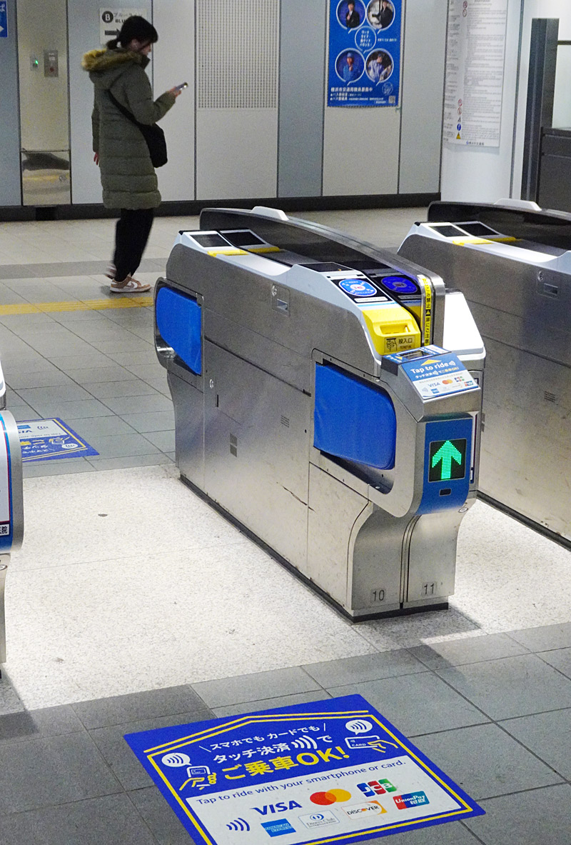 クレジットカード対応の改札機は、2024年12月から実証実験の形で市営地下鉄の全40駅に導入されましたが、現在は各改札口で1台のみにとどまっています。