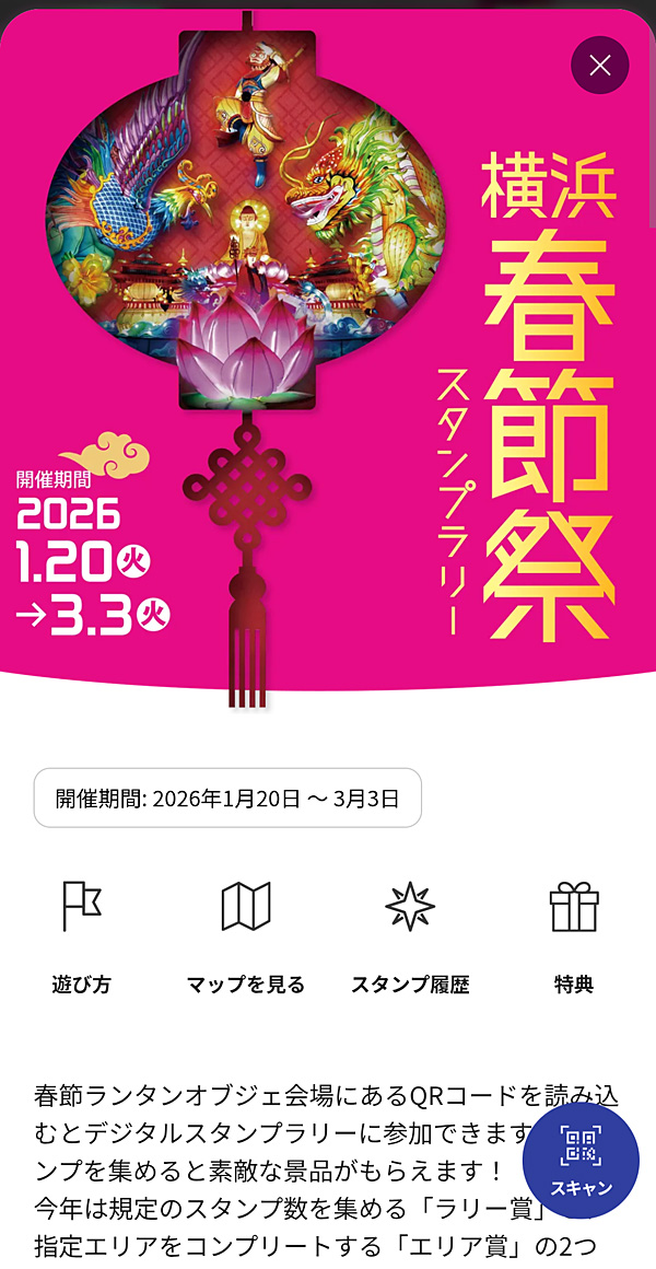 ・横浜春節祭デジタルスタンプラリー(ランタンオブジェの展示場所の一覧も、2026年1月20日~3月3日開催)