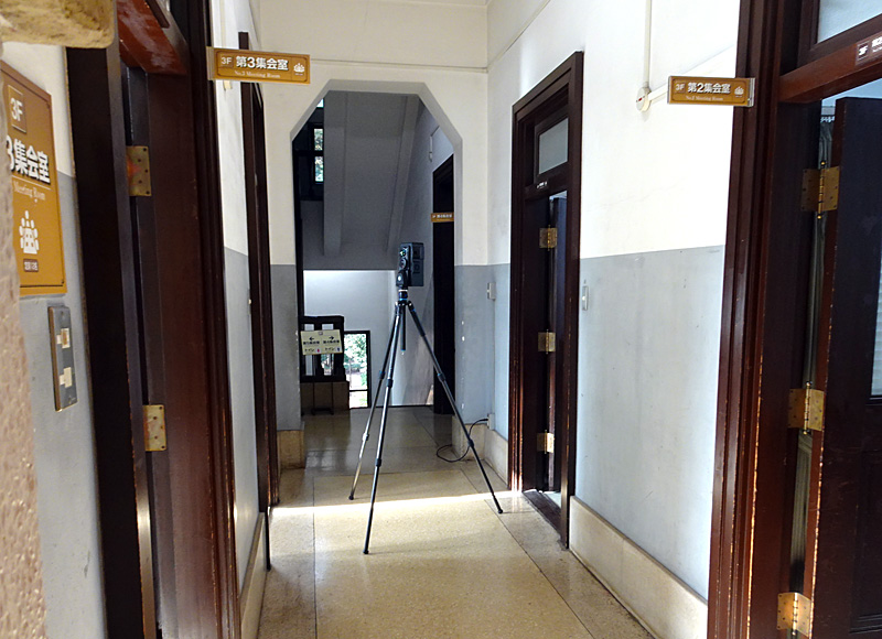 今月(2026年)1月19日に大倉山記念館の休館日を使って行われた三次元モデル化に向けた作業では、室内のあらゆる部屋を「スキャニングカメラ」を用いて上下左右前後と360度にわたって撮影。