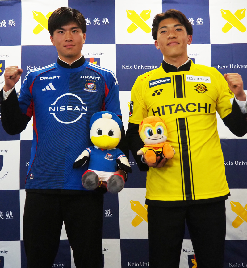 慶應義塾大学下田グラウンド(サッカー場、下田町1)を本拠地とし活動を行う慶應義塾大学体育会サッカー(ソッカー)部は、今週(2026年)2月3日午後、プロチームに入団内定した3選手合同の記者会見を開催。