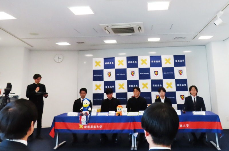 同大学三田キャンパス(港区三田)の東別館(ミュージアム・コモンズ)内のカンファレンスルームで行われた会見会場には、全国系メディアや慶應スポーツ新聞会の取材記者、同部の秋山美紀部長や中田一朗総監督、学校広報関係者らが来場。