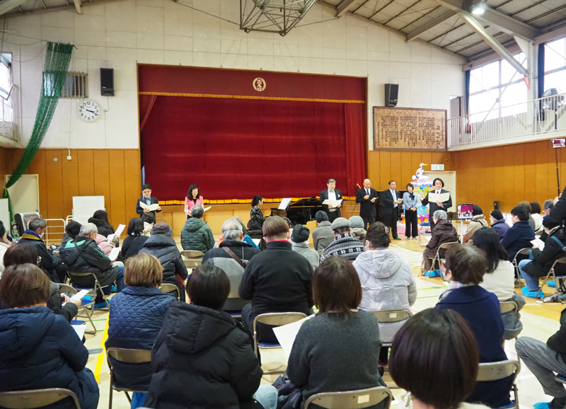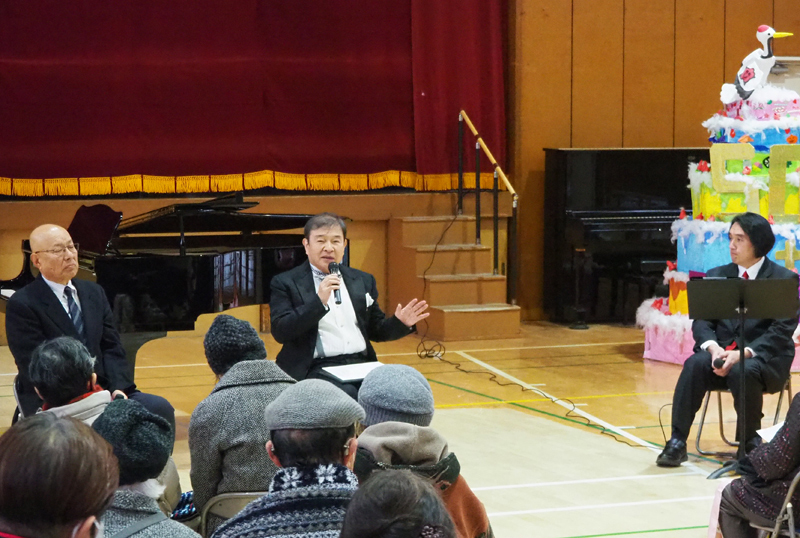 そしていよいよ“歌う耳鼻科医”としての日々を送ってきた校医の齊田晴仁さんが、江澤隆行さんのピアノ伴奏でテノール歌手として登場。「サンタ・ルチア」「オー・ソレ・ミオ」「グラナダ」「荒城の月」「待ちぼうけ」「松島音頭」そして「浜辺の歌」を披露しました