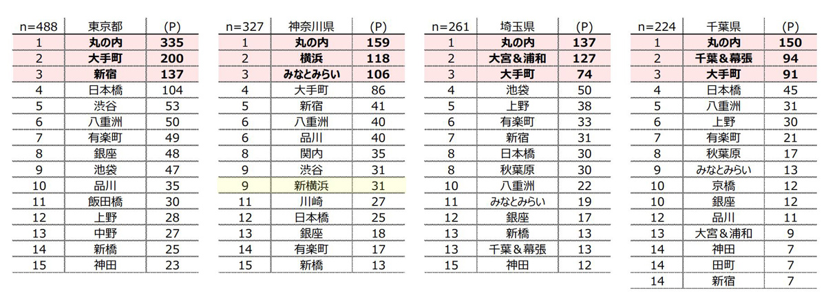 今回の働きたい街ランキングで新横浜は、 居住県別の神奈川県ランキングで渋谷と同順位の9位に入りましたが、全体では15位までに入れずランキング外となっています。