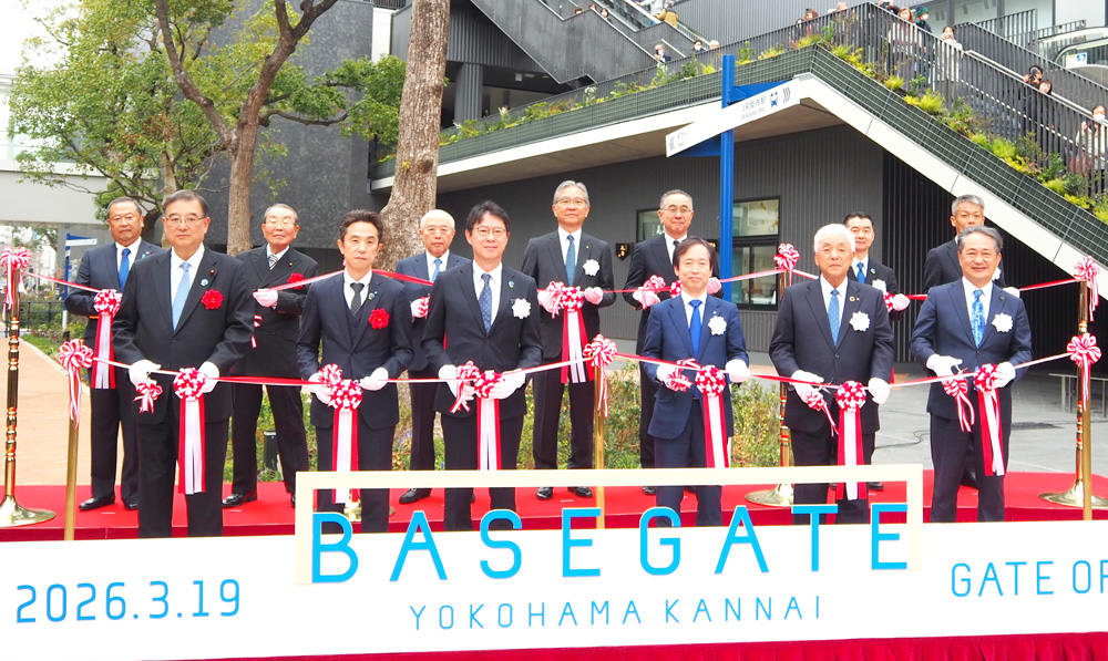 JR関内駅前の旧横浜市役所跡を活用した大規模再開発「BASEGATE(ベースゲート)横浜関内」が今月(2026年)3月19日(木)にオープンし、関係者がテープカットするなど開業セレモニーを行ったのち、待ちわびた多数の客が訪れました。